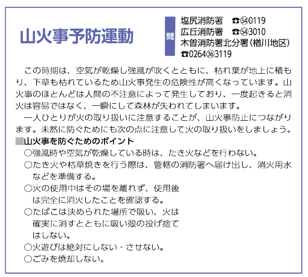 くらし 山火事予防運動 23/36 前の記事 次の記事 発行日 : 2026年02月01日 自治体名 : 長野県塩尻市 広報紙名 : 広報しおじり 令和8年2月号 Tweet シェアする くらしの情報~講座・教室~ くらしの情報~図書館~