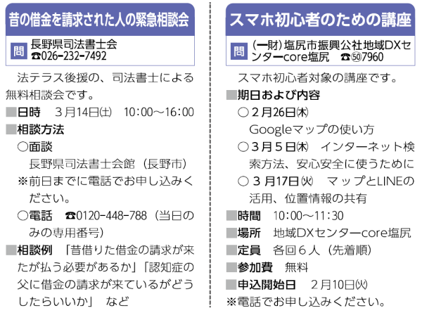 くらし くらしの情報~伝言板~ 26/36 前の記事 次の記事 発行日 : 2026年02月01日 自治体名 : 長野県塩尻市 広報紙名 : 広報しおじり 令和8年2月号 Tweet シェアする 木の玩具で遊ぼう! 市営住宅などの入居者を募集