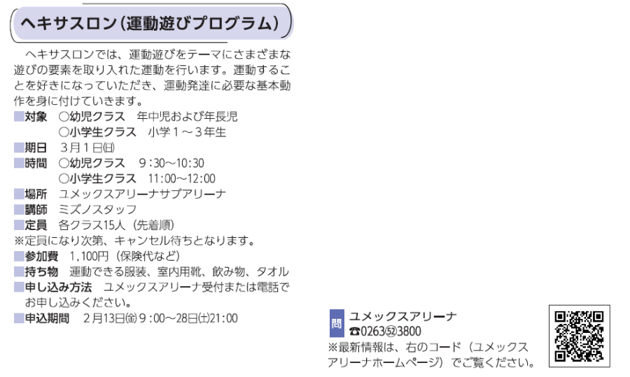 イベント YOUMEX ARENA(ユメックスアリーナ) ~イベント情報~ 30/36 前の記事 次の記事 発行日 : 2026年02月01日 自治体名 : 長野県塩尻市 広報紙名 : 広報しおじり 令和8年2月号 Tweet シェアする レザンホールへ行こう! 休日の当番医等