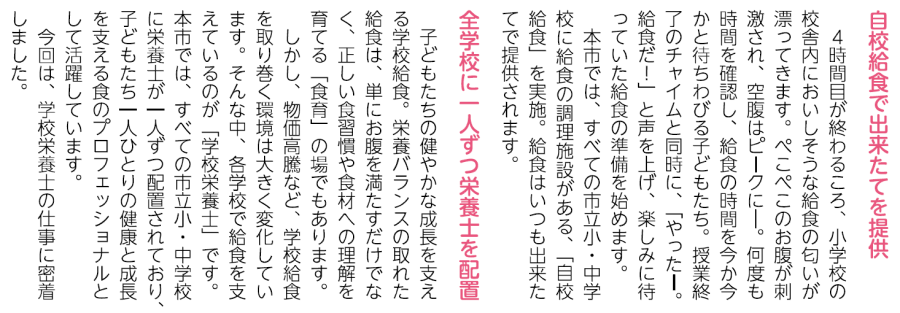 子育て 【特集】おいしくて安全な学校給食を支えるヒーロー(1) 1/31 次の記事 発行日 : 2025年10月01日 自治体名 : 長野県塩尻市 広報紙名 : 広報しおじり 令和7年10月号 Tweet シェアする 【特集】おいしくて安全な学校給食を支えるヒーロー(2)