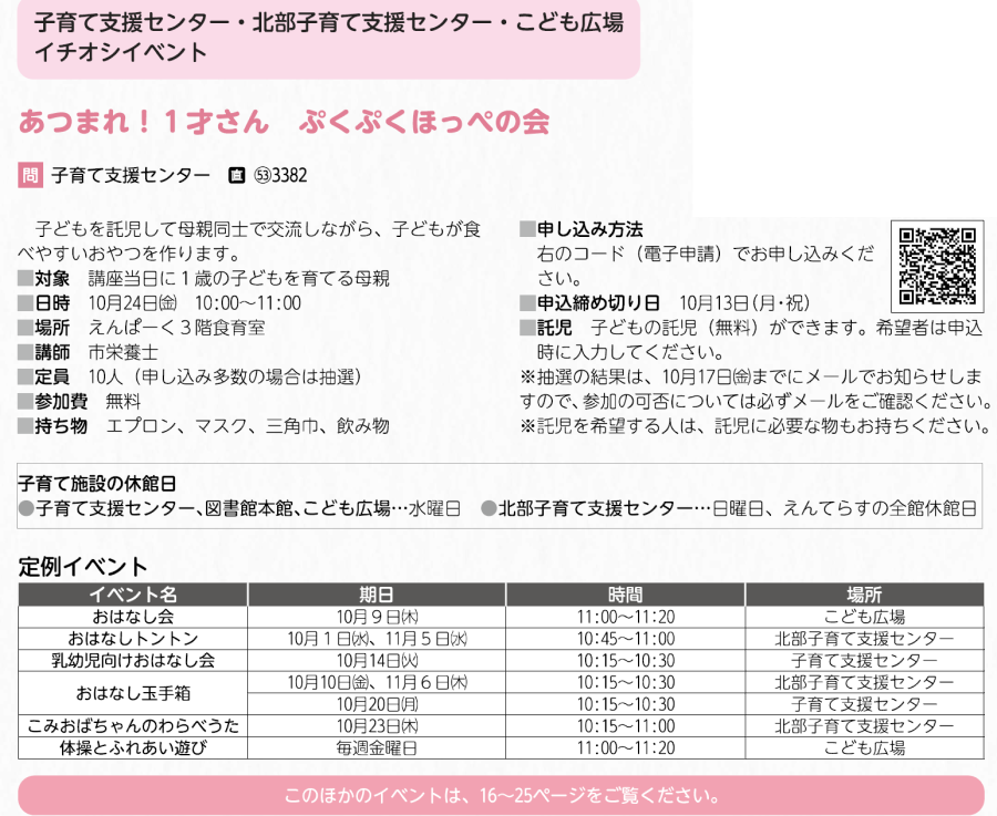 子育て 子育てだより 6/31 前の記事 次の記事 発行日 : 2025年10月01日 自治体名 : 長野県塩尻市 広報紙名 : 広報しおじり 令和7年10月号 ■しおじり子育てつながる相談室 ※コードは本紙参照。 Tweet シェアする フォトニュース ~まちの話題をお届けします~ しおじりっこフォト しおふぉと