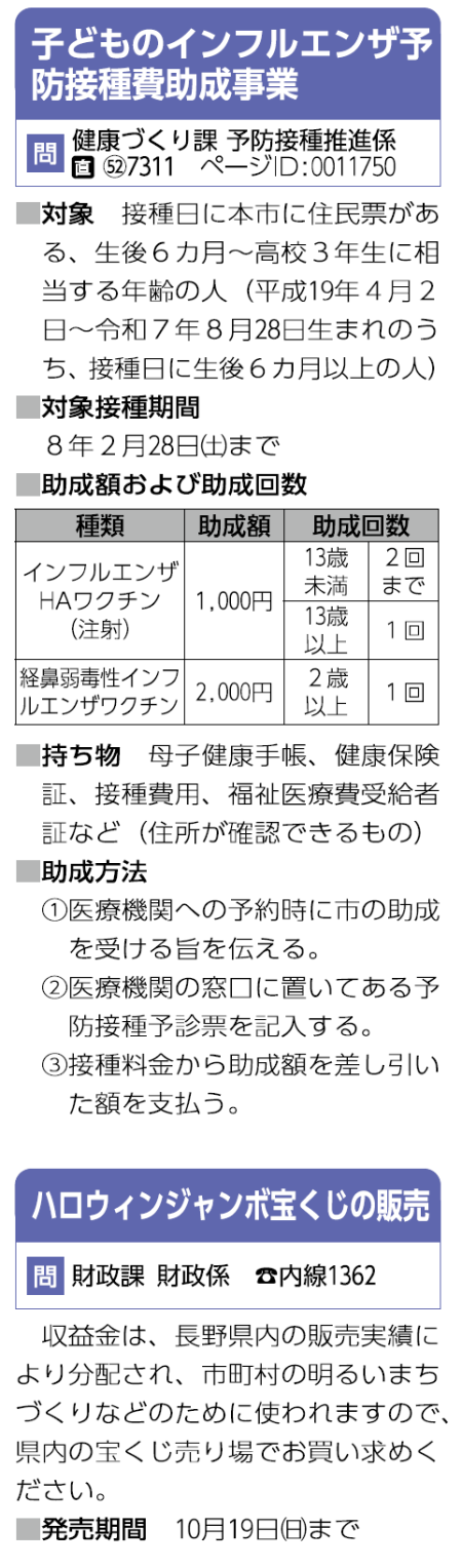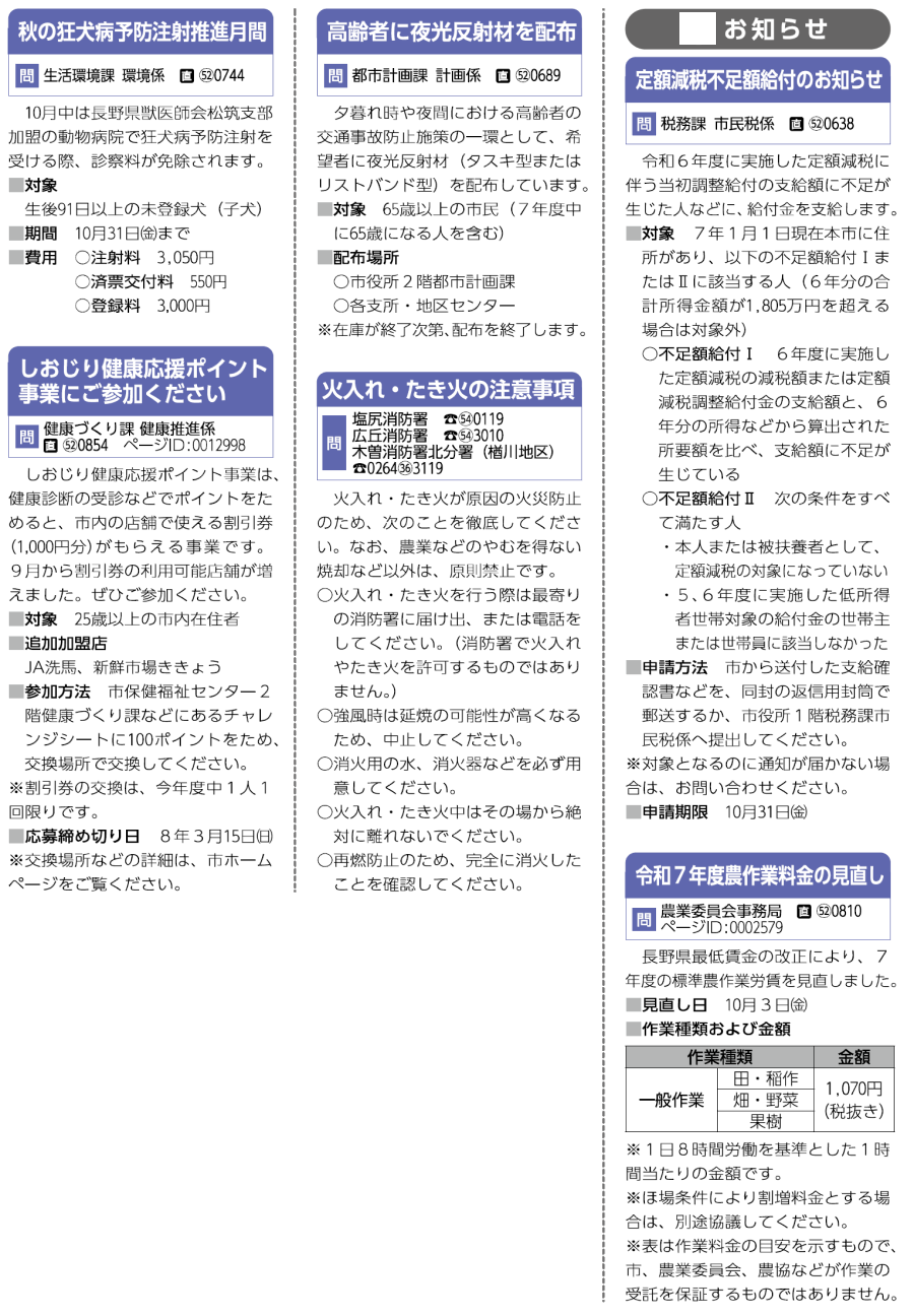くらし くらしの情報~お知らせ~ 10/31 前の記事 次の記事 発行日 : 2025年10月01日 自治体名 : 長野県塩尻市 広報紙名 : 広報しおじり 令和7年10月号 Tweet シェアする 家庭介護者慰労金を支給 出張一時的(デイ)保育を行います