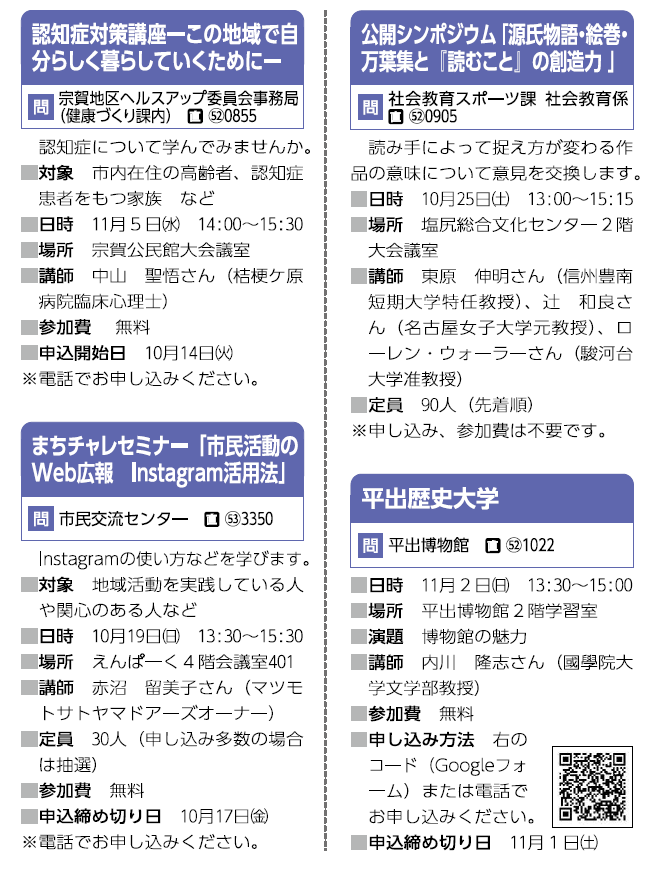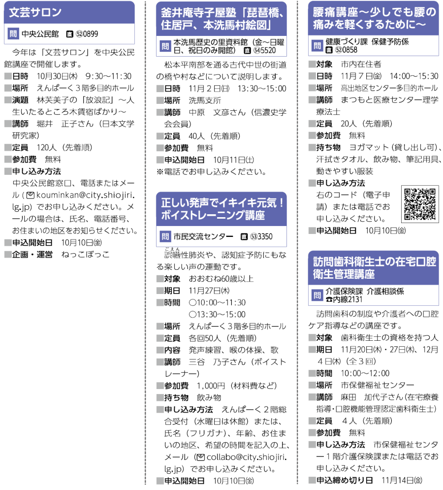 講座 くらしの情報~講座・教室~ 16/31 前の記事 次の記事 発行日 : 2025年10月01日 自治体名 : 長野県塩尻市 広報紙名 : 広報しおじり 令和7年10月号 Tweet シェアする 高齢者のインフルエンザと新型コロナウイルスの予防接種が始まります 第10回こどもだけの街「こどもしおじり」