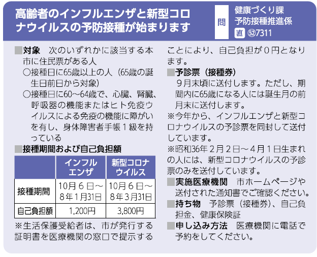 健康 高齢者のインフルエンザと新型コロナウイルスの予防接種が始まります 15/31 前の記事 次の記事 発行日 : 2025年10月01日 自治体名 : 長野県塩尻市 広報紙名 : 広報しおじり 令和7年10月号 Tweet シェアする 奨学金を返還している人に補助金を交付します くらしの情報~講座・教室~
