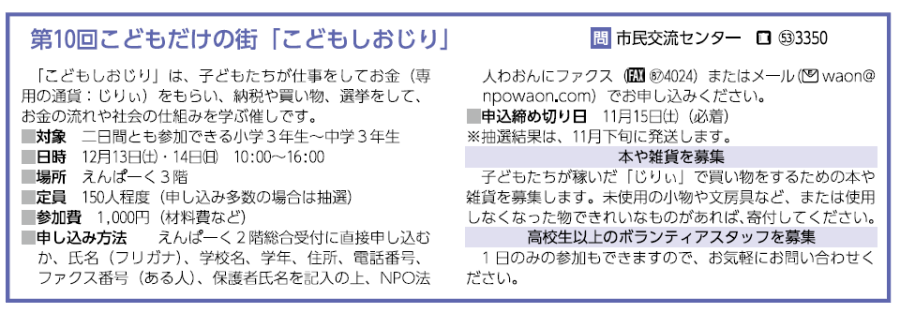 子育て 第10回こどもだけの街「こどもしおじり」 17/31 前の記事 次の記事 発行日 : 2025年10月01日 自治体名 : 長野県塩尻市 広報紙名 : 広報しおじり 令和7年10月号 Tweet シェアする くらしの情報~講座・教室~ くらしの情報~子育て~