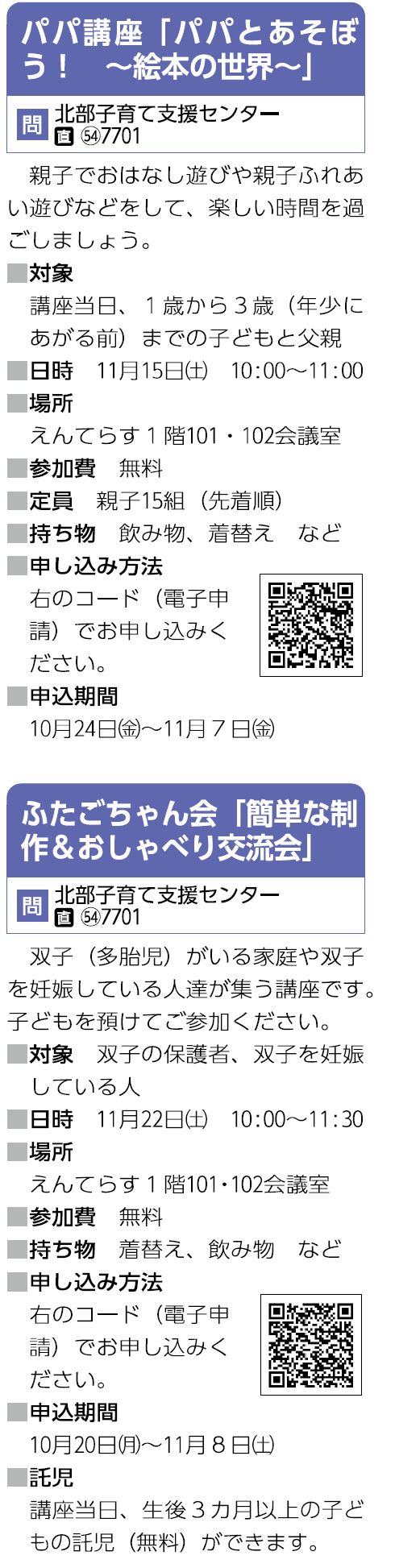 子育て くらしの情報~子育て~ 18/31 前の記事 次の記事 発行日 : 2025年10月01日 自治体名 : 長野県塩尻市 広報紙名 : 広報しおじり 令和7年10月号 Tweet シェアする 第10回こどもだけの街「こどもしおじり」 えんぱーく読書週間スペシャルデー