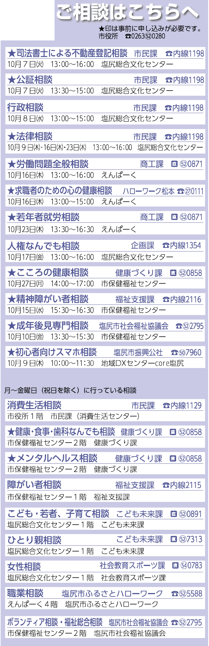 くらし ご相談はこちらへ 29/31 前の記事 次の記事 発行日 : 2025年10月01日 自治体名 : 長野県塩尻市 広報紙名 : 広報しおじり 令和7年10月号 Tweet シェアする 休日の当番医等 みんなのひろば