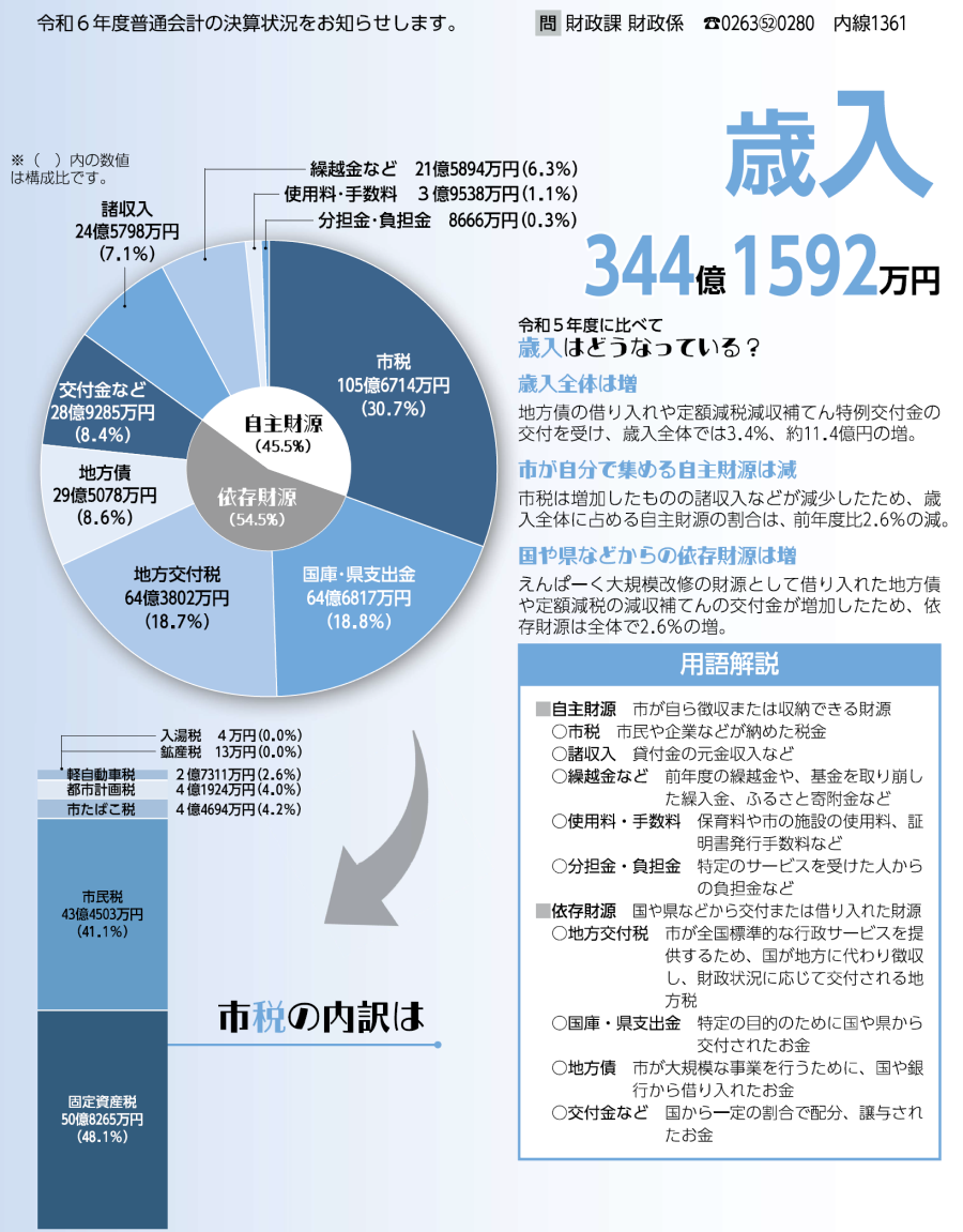 くらし 令和6年度決算報告「塩尻市のお財布事情」(1) 1/42 次の記事 発行日 : 2025年11月01日 自治体名 : 長野県塩尻市 広報紙名 : 広報しおじり 令和7年11月号 Tweet シェアする 令和6年度決算報告「塩尻市のお財布事情」(2)