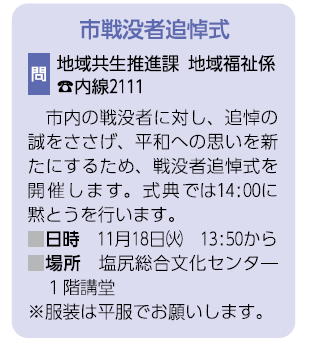 くらし 市戦没者追悼式 27/42 前の記事 次の記事 発行日 : 2025年11月01日 自治体名 : 長野県塩尻市 広報紙名 : 広報しおじり 令和7年11月号 Tweet シェアする くらしの情報~図書館~ くらしの情報~子育て~