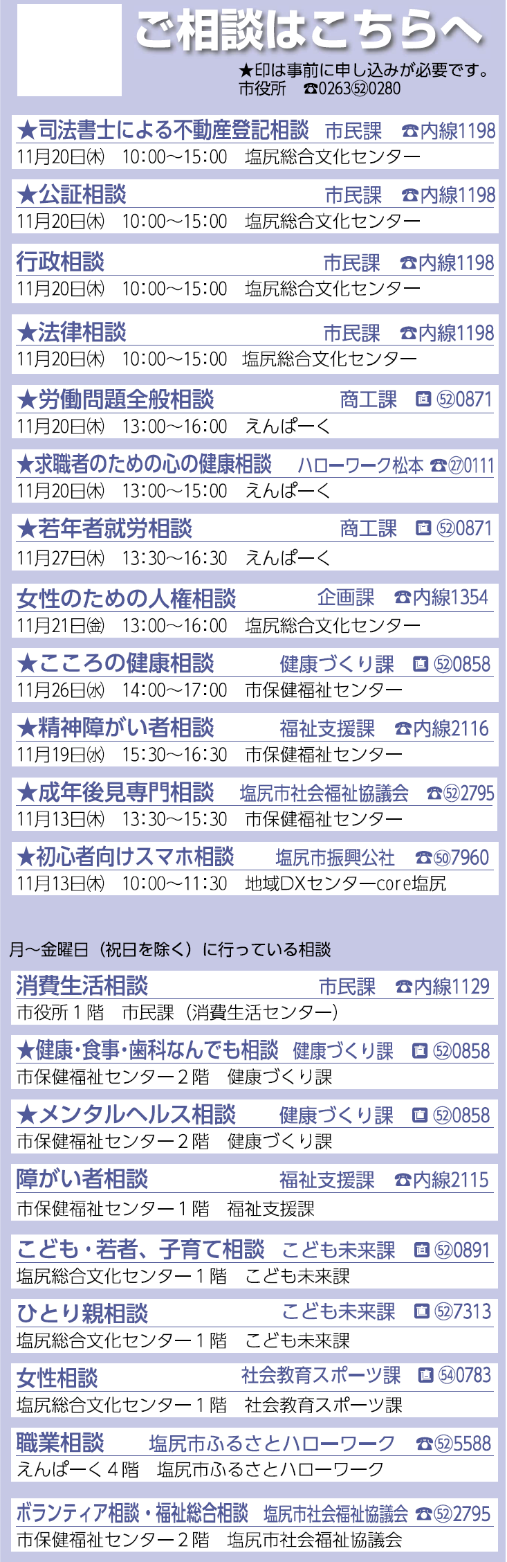 くらし ご相談はこちらへ 38/42 前の記事 次の記事 発行日 : 2025年11月01日 自治体名 : 長野県塩尻市 広報紙名 : 広報しおじり 令和7年11月号 Tweet シェアする 休日の当番医等 みんなのひろば