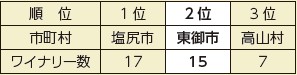 東御市には、15場のワイナリーがあります。この15場という数字は、ワインの先進地である塩尻市に迫る勢いです。