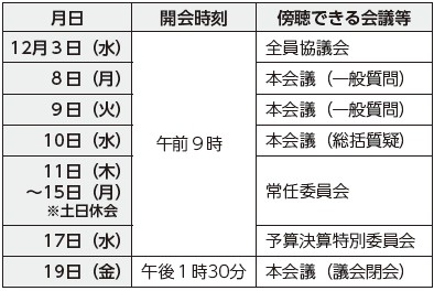 常任委員会・予算決算特別委員会の傍聴には委員長の許可が必要です。また、開会時刻等が変更となる場合がありますので、事前に下記までご確認ください。