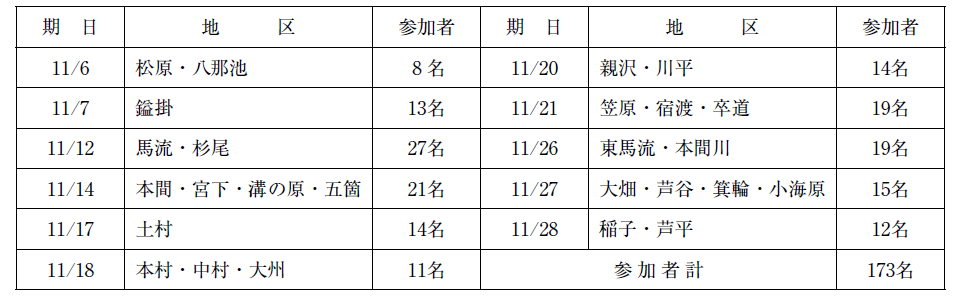 令和7年度地区懇談会を分館単位11箇所で開催し、町民の皆様から102件のご意見・ご要望をいただきました。ご出席ありがとうございました。以下に懇談会の概要を報告します。