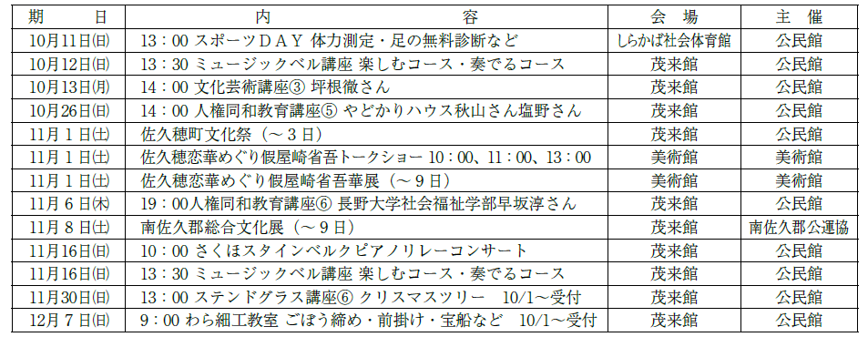 ・茂来館代表佐久穂町公民館【電話】0267-86-2041