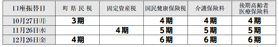 町税等の口座振替をご利用の方は納付月の26日が振替日となります。