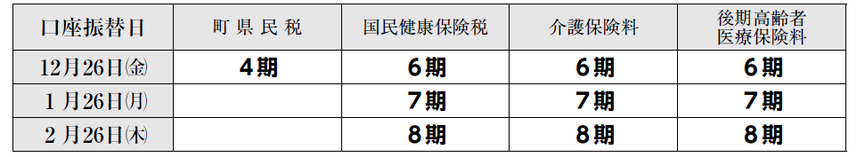 町税等の口座振替をご利用の方は納付月の26日が振替日となります。