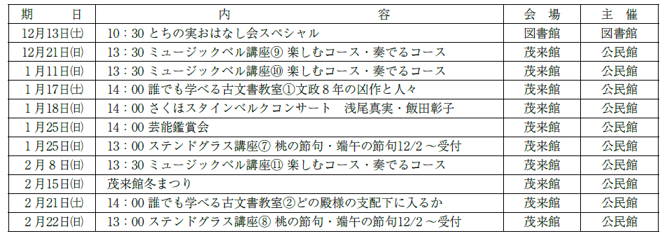 茂来館代表佐久穂町公民館【電話】0267-86-2041