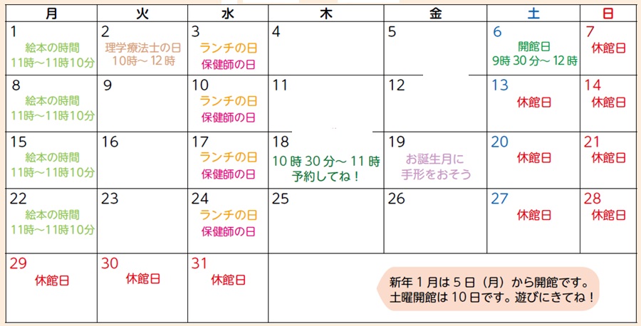 申込み:12月11日(木)までに支援センターに申し込みください。