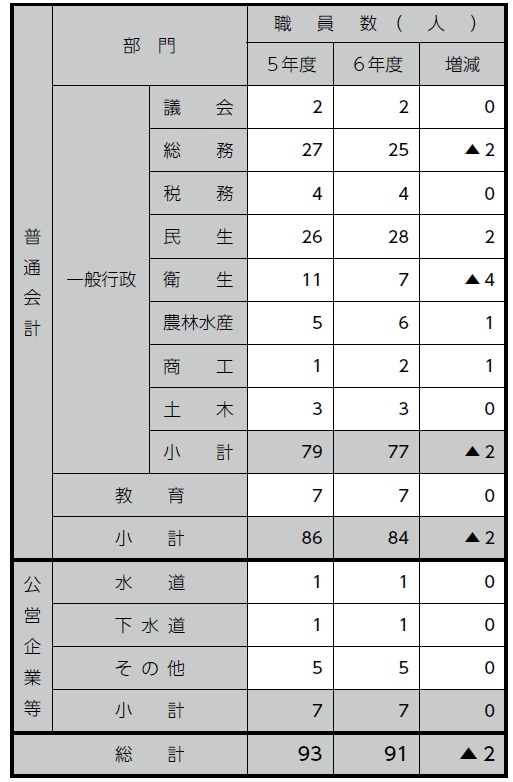 1.職員の任免および職員数に関する状況