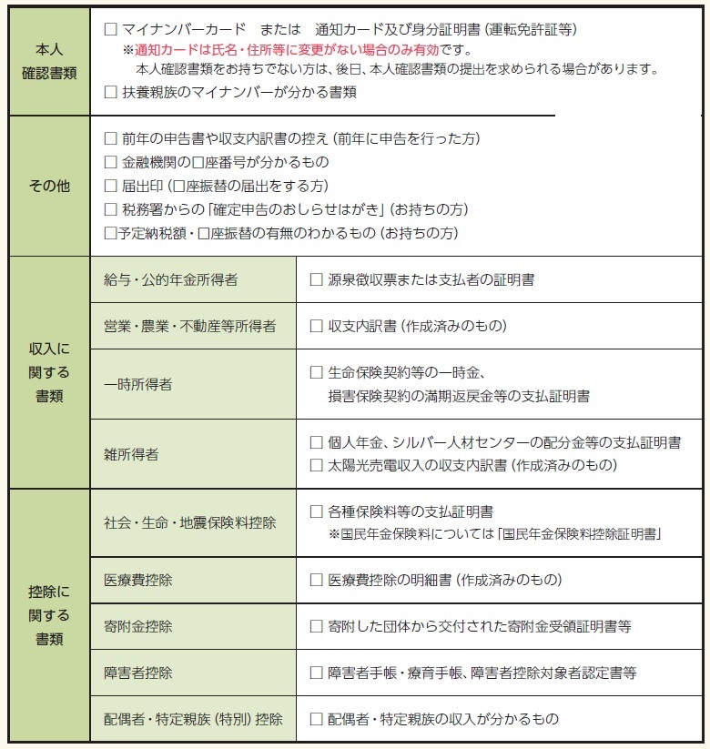 ◯申告相談に必要なもの