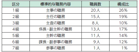 (注1)原村の給与条例に基づく給料表の級区分による職員数です(再任用を除く)。