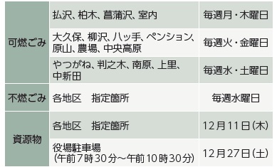 12月31日(水)~1月3日(土)のごみ収集はありません。清掃センター等の休業は広報紙14ページをご覧ください。