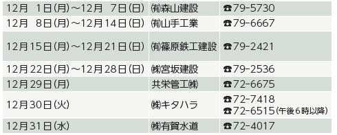 給水装置工事・修理は、施工された村指定工事店へ依頼してください。