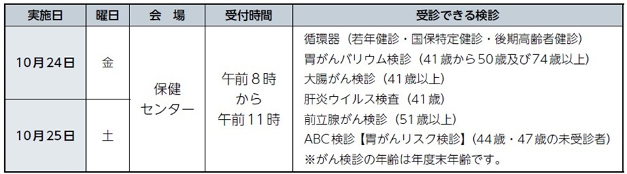 さわやか健診予約フォームからの事前申込みは10月15日まで可能です。