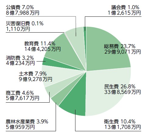 令和6年度一般会計決算額は、歳入132億5,093万円歳出126億3,354万円となり、差引残額6億1,739万円は、令和7年度に繰り越されました。
