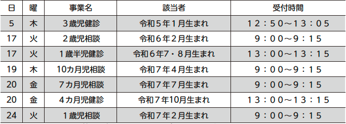 令和5年2月生の3歳児健診は令和8年3月5日(木)に行います。