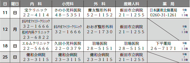 ■1月の休日当番医・薬局