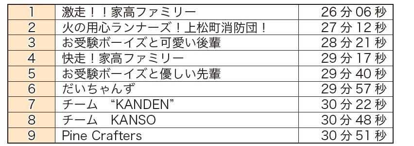 第4回目となる今回は、「激走!!家高ファミリー」が接戦の末に、大会記録を20秒更新して見事優勝を勝ち取りました。
