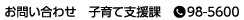 村立山形保育園:【電話】98-2035(個別に対応します。必要な方は山形保育園へお電話ください。)