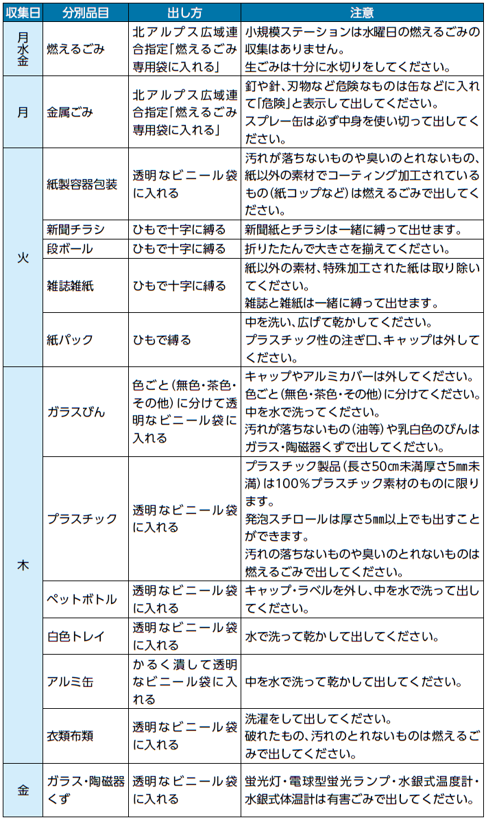 なお、地区集積場は行政区で管理運営されています。行政区に加入していない方は白馬リサイクルセンターへ出すことができます。
