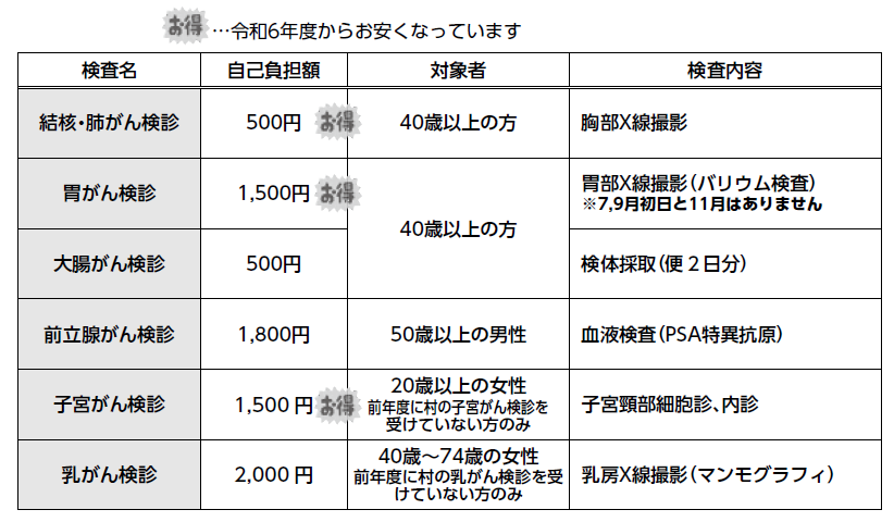 ・同一年度内に村の健診(検査結果提出含む)を受診する場合、人間ドックの費用補助を受けられませんので、ご注意ください。