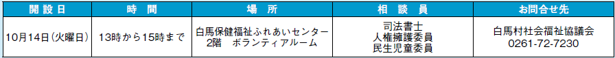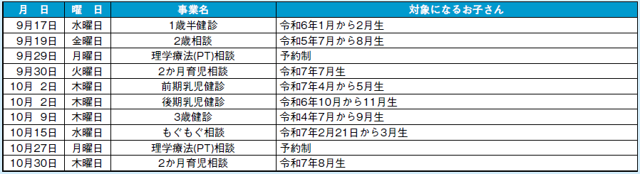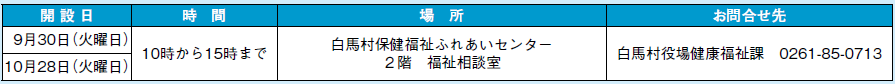なお、10月6日(月曜日)から白馬村保健福祉ふれあいセンター内でなかよし広場(3階)を実施します。親子で遊びに来てください。