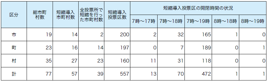 県内他市町村においては、7割を超える市町村が投票時間を短縮している状況にあります。