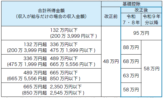 ・次のとおり、合計所得金額に応じて基礎控除額が改正