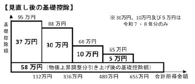 ・低~中所得者の方の税負担への配慮上記の58万円に加えて、所得金額に応じて、37万円、30万円、10万円、5万円を上乗せ