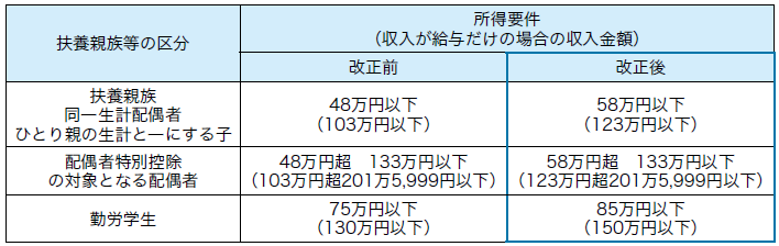 ・基礎控除額の改正に伴い、扶養親族等の所得要件が改正