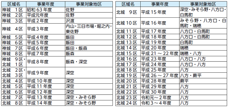 昭和63年に佐野地区から調査開始し、八方地区までの調査が終了しました。事業開始から37年が経過し、現在の進捗は約60%程度です。