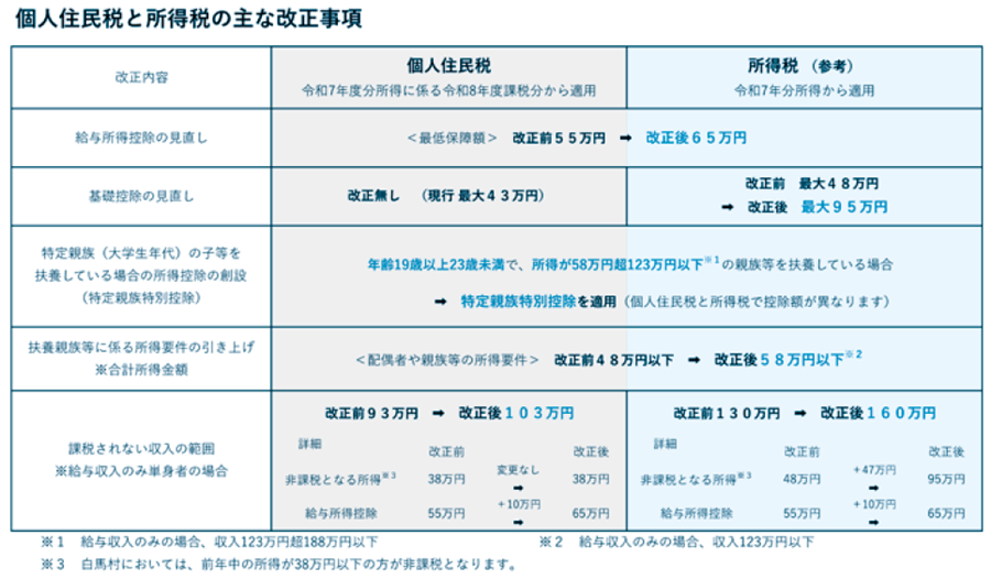 くらし いわゆる「年収の壁」に関する令和7年度税制改正の主な内容(2) 9/32 前の記事 次の記事 発行日 : 2025年11月17日 自治体名 : 長野県白馬村 広報紙名 : 広報はくば 2025年11月号 Vol.590 お問合せ:白馬村役場 税務課 【電話】0261-85-0712 Tweet シェアする いわゆる「年収の壁」に関する令和7年度税制改正の主な内容(1) 〔税務署からのお知らせ〕令和7年分青色決算説明会のご案内(個人事業主の皆様へ)