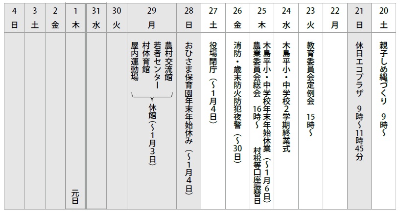 ▽村税等の口座振替日は12月25日(木)です。前日までに口座残高の確認をお願いします。