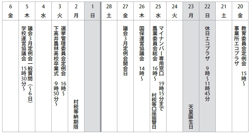 ▽議会日程は2月18日の議会運営委員会で正式決定します。村公式ウェブサイトをご覧ください。