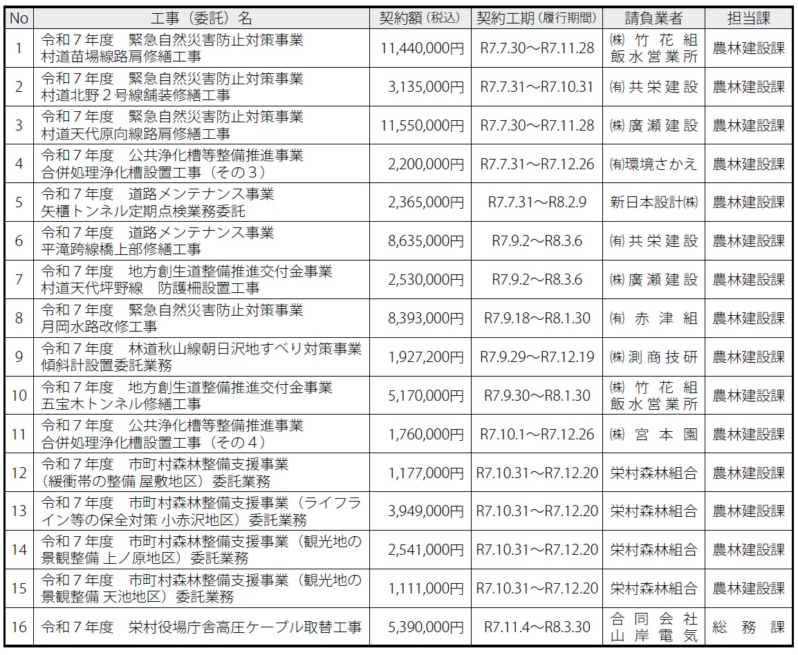 くらし 【令和7年度】7月~11月 工事等の契約状況(指名競争入札) 9/30 前の記事 次の記事 発行日 : 2025年12月01日 自治体名 : 長野県栄村 広報紙名 : 広報さかえ 令和7年12月号 問合せ:総務課 行政係 【電話】0269-87-3112 Tweet シェアする 栄村戦没者追悼式 クマにご注意ください!