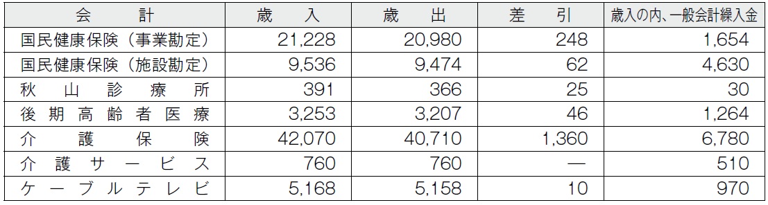 特別会計・公営企業会計とは、特定の目的のために、保険料や使用料などの収入で運営していく事業の会計であり、村には以下の会計があります。各会計の決算は以下の通りとなりました。