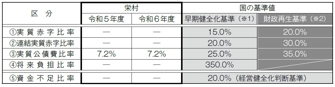 令和6年度決算に基づく栄村の財政状況は、いずれの指標も国が定める基準を下回っており、おおむね健全であるという結果になりました。