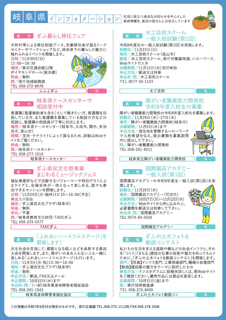 くらし 岐阜県インフォメーション 令和7年10月号 4/4 前の記事 発行日 : 2025年10月01日 自治体名 : 岐阜県 広報紙名 : 岐阜県からのお知らせ 令和7年10月1日号 Tweet シェアする その他のお知らせ(岐阜県からのお知らせ 令和7年10月1日号)