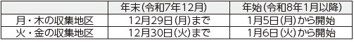 ◆燃やせるごみの年末年始収集日
