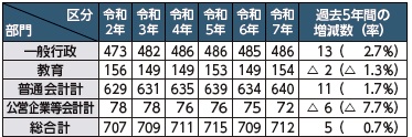 (注) 職員数は、一般職に属する職員数であり、地方公務員の身分を保有する休職者、派遣職員などを含み、非常勤職員(会計年度任用職員)を除きます。